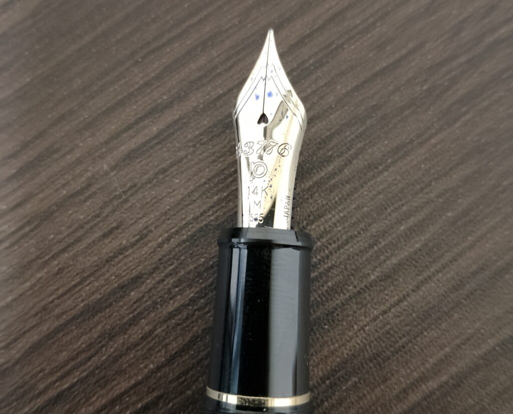 また、14金の大型ペン先が使われているため、見た目にもインパクトがありますし、金ペンの非常にゆったりとした書き味を楽しむことができます。
