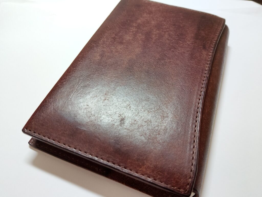 9か月ほど愛用しているUNROOFのブックカバーが、良い感じに経年変化してきました。